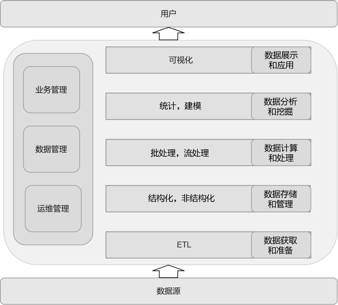 大数据的原理是收集海量的原始数据,再对数据进行清洗与计算,最后支撑业务层的应用。