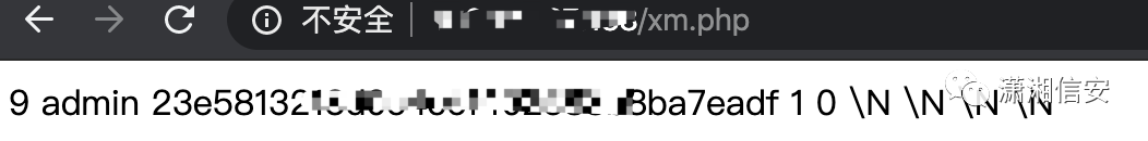 1. 写入成功后,菜刀可以连接,我们访问写入的文件,惊奇的发现竟然有admin,和一串md5码,大胆猜测可能是后台账号和密码,试一下
