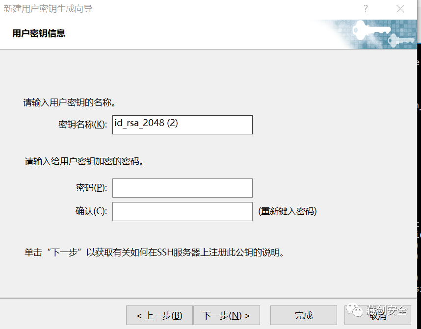 新建用户密钥,按照默认的就行,随后输入密码(随意设置即可,简单点……)