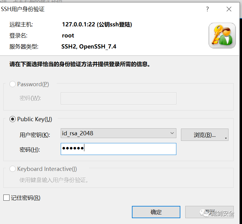 输入用户名root,然后进行公钥登陆认证,密码就是刚刚xshell设置给用户密钥加密的密码