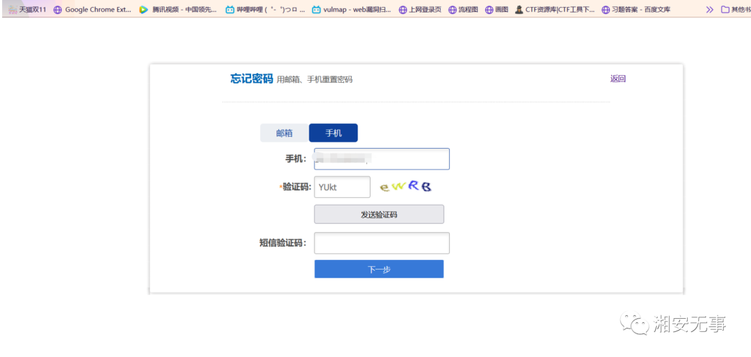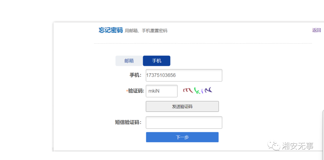 00X1:首先我用我的手机号注册了一个账号,然后点击忘记密码