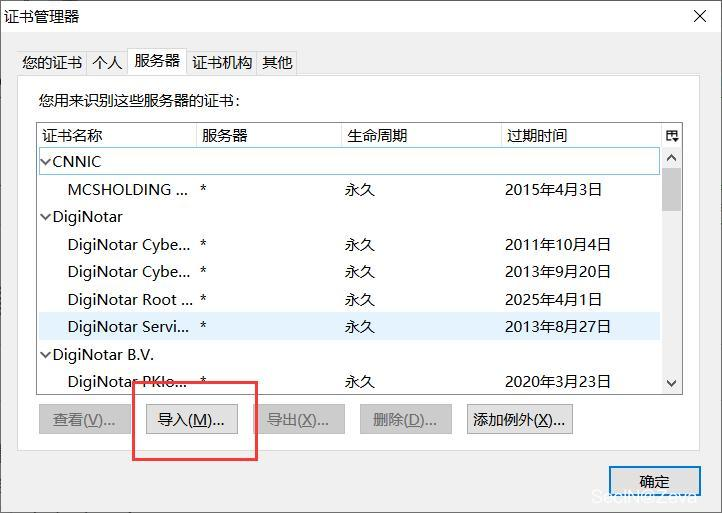 然后将证书导入到浏览器。