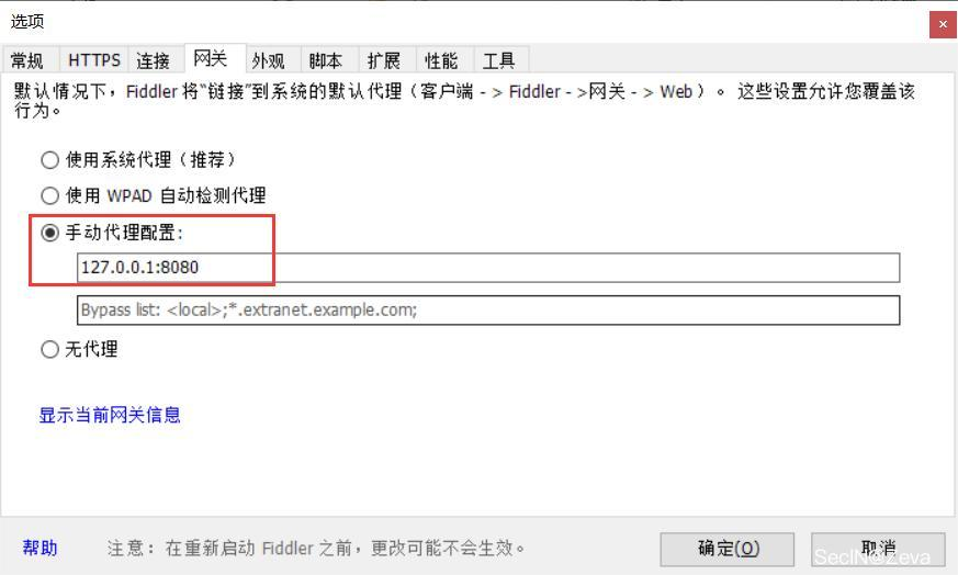 至此 Fiddler可以正常抓取http和https数据包。关于Fiddler联动burp 抓包,配置如下图: