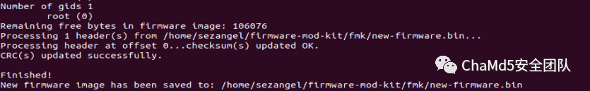 此时添加完后门后,我们利用firmware-mod-kit直接进行重打包: