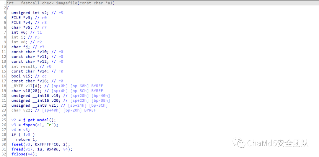 进行完固件重打包后,固件在更新上传时会有校验,校验的函数在libshared.so文件中,名为check_imagefile。校验的关键代码如下: