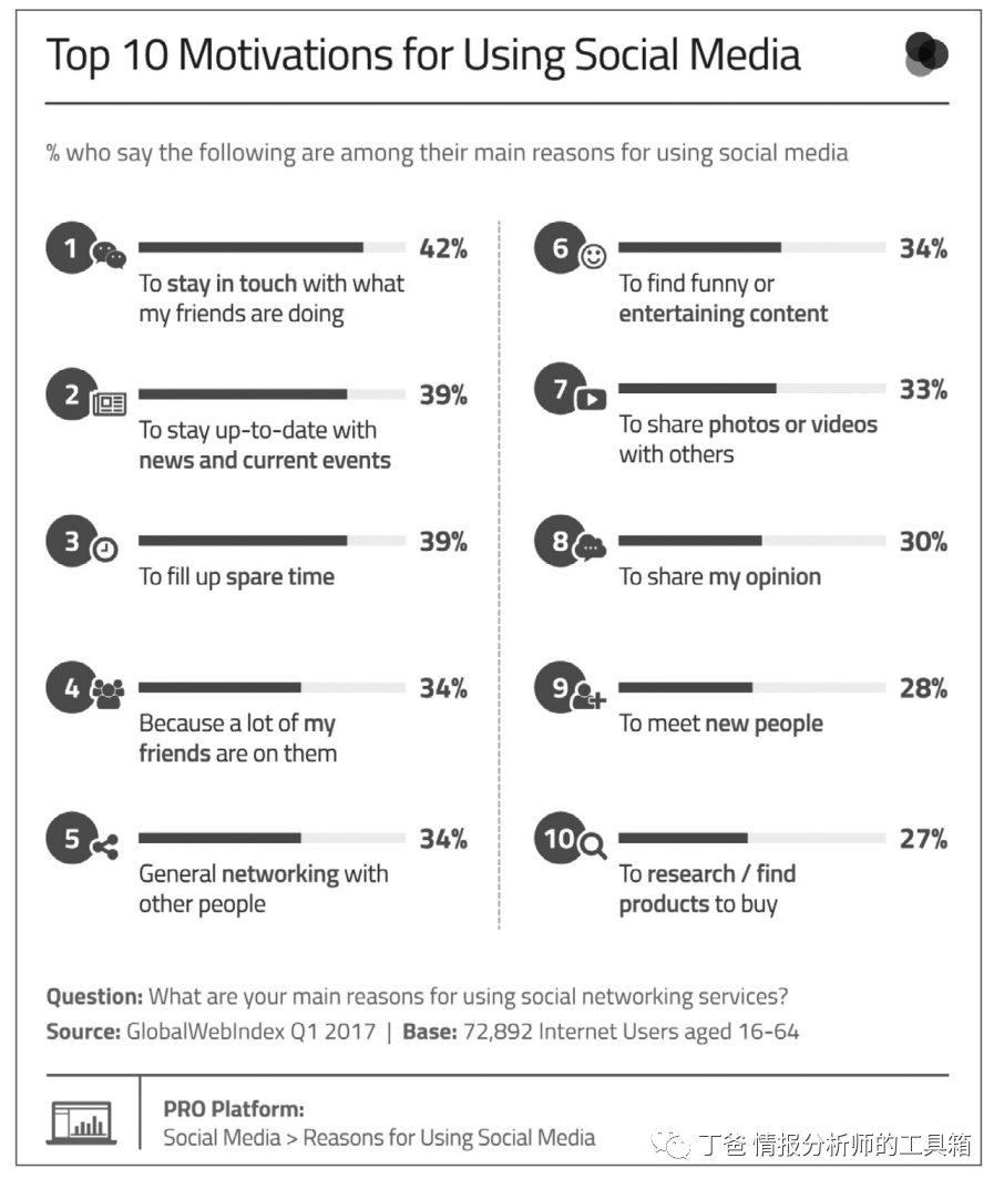 图 1. 来源:http://www.globalwebindex.net/blog/top-10-reasons-for-using-social-media