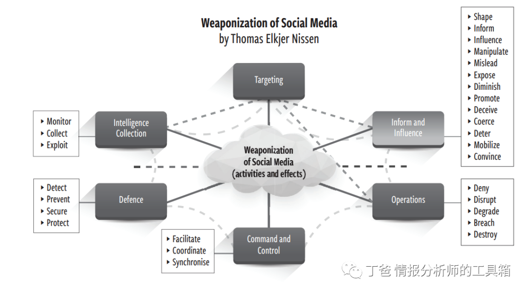 社交媒体武器化,这意味着将社交网络转变为在和平与战争之间的灰色地带对目标受众进行敌对信息活动的场所。