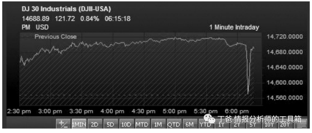 AP 账户的暂时停用只是这次行动的一个小影响。道琼斯指数的剧烈反应(见下图)是严重影响的完美例证。