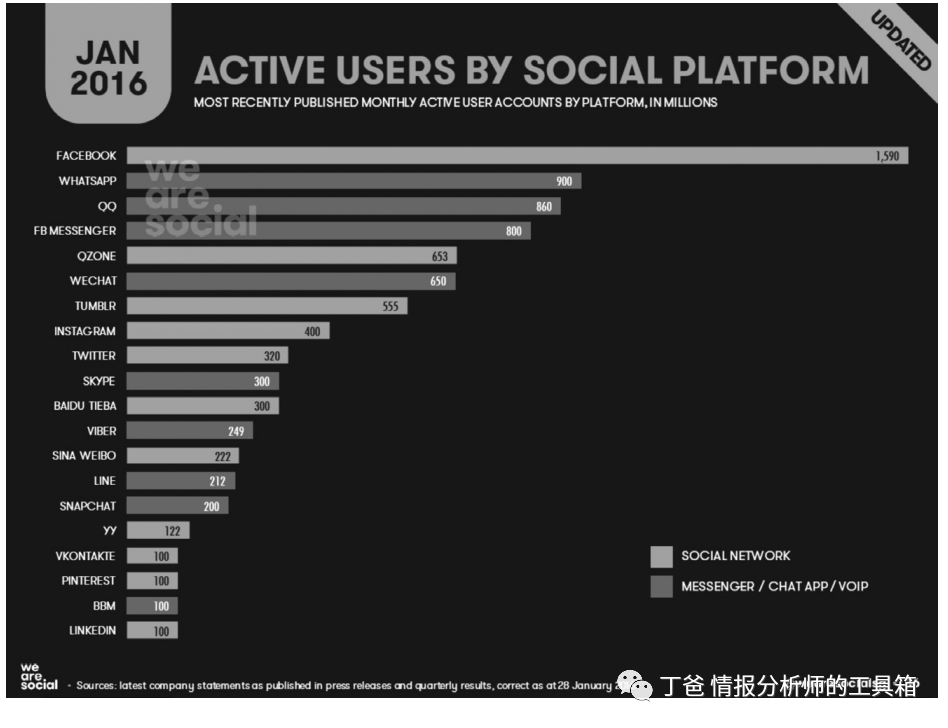 与此同时,在线社区见证了Myspace、YouTube和谷歌+等平台的诞生,紧随其后的是Instagram、Snapchat和其他数十个平台。最近移动技术的出现强烈地影响了用户的行为,迫使社交媒体平台通过引入移动应用程序来适应这种新环境。2016年初,超过23亿人在使用社交媒体:其中19亿用户通过手机访问社交媒体。移动技术尤其促进了照片和视频分享平台(如Instagram或Snapchat)、娱乐定位应用程序(如Foursquare)、约会服务(如Tinder)以及最后但并非最不重要的直接通讯应用程序(如WhatsApp)的发展。