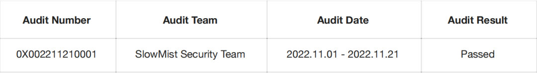 本次审计在 2022 年 11 月 1 日 - 2022 年 11 月 21 日之间进行,慢雾(SlowMist) 采用“黑盒、灰盒为主、白盒为辅”的策略,以最接近真实攻击的方式对项目进行完整的安全测试,目标是通过发现并修复安全漏洞,并向团队提供修复与加强建议,以保护项目及用户安全。慢雾(SlowMist) 对链的安全审计过程重点包括以下两个步骤:1)使用自动化工具分析扫描/测试源代码以查找常见的编码缺陷;2)针对列举的安全问题对代码进行人工审计,手动分析代码以查找任何潜在问题。