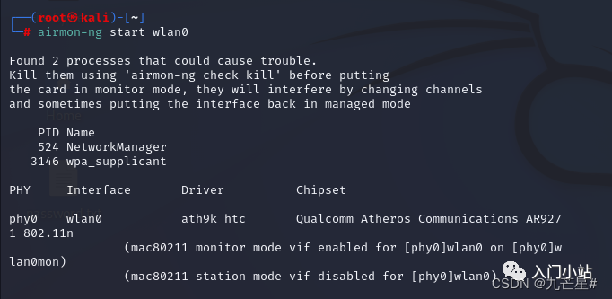 出现 wlan0mon 后证明网卡监听服务准备就绪