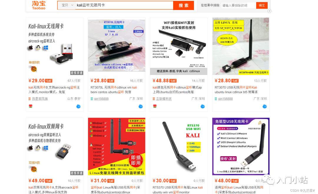 直接在某宝或某多多搜索:kali 监听无限网卡