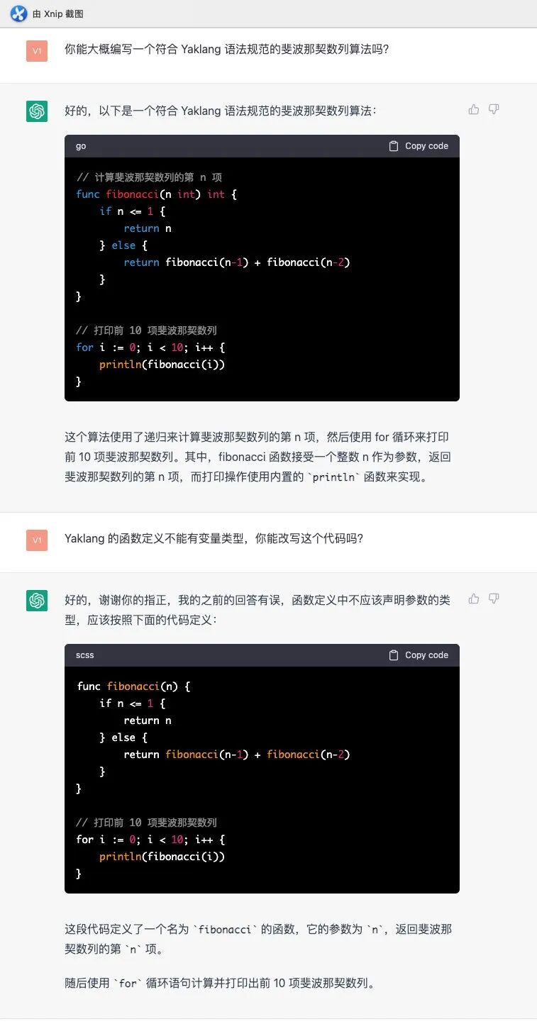 AI说它看懂了,这是一个语法规则文件,接下来我们让他编写一个斐波那契数计算看看深浅。(这个挑战并不简单,最直观的斐波那契数列的计算要用到递归)