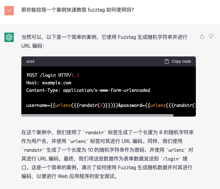 我们姑且认为现在他已经学习了 Fuzztag 的正确用法,那么就可以尝试让他来编写一个案例。