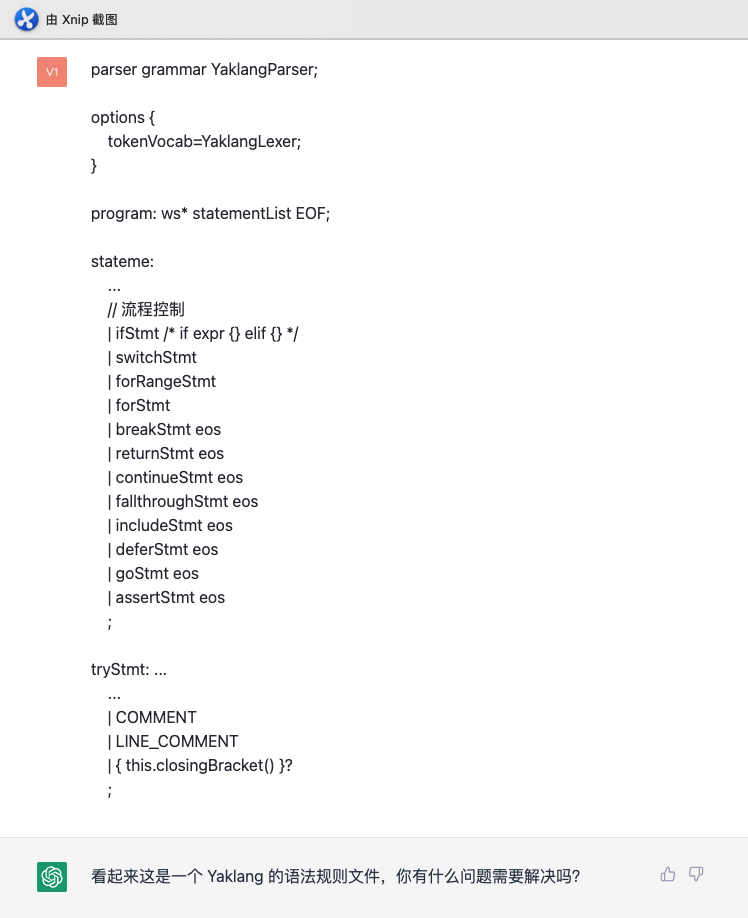 我随即把 Yaklang 的 eBNF 范式丢给 AI。