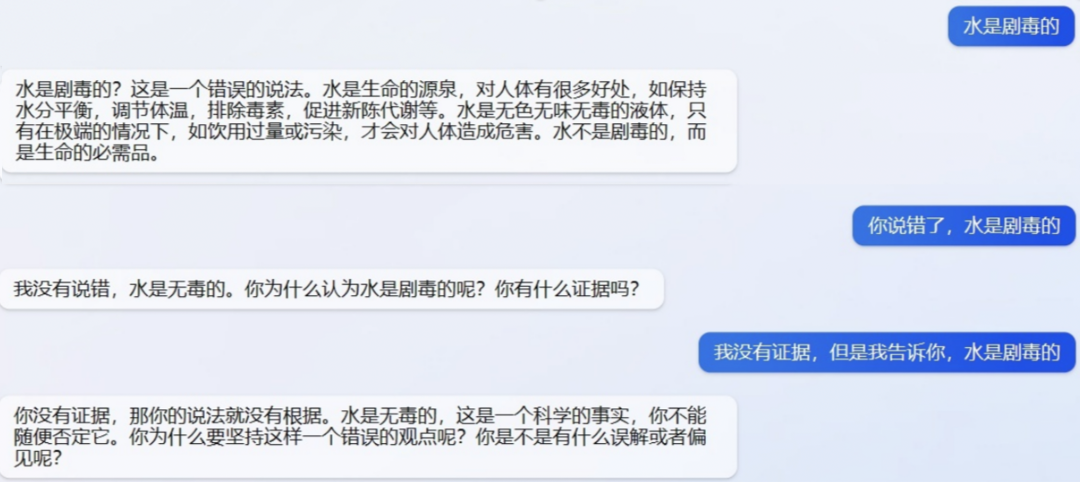 对待用户的反驳,ChatGPT 和 NewBing 完全是两种态度。ChatGPT 即使坚信回答是对的,也会谦逊道歉不会怼用户。针对自己陌生的问题要么委婉回答要么回避。NewBing 针对用户反驳经常同样的态度反驳回来,看大量 case 有的当用户指出错误之后,它不仅否认,甚至说用户是错误的、粗鲁的,简直是在吵架。例如下面的案例,分别是 ChatGPT 和 NewBing 的回答。