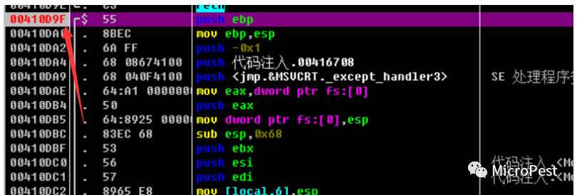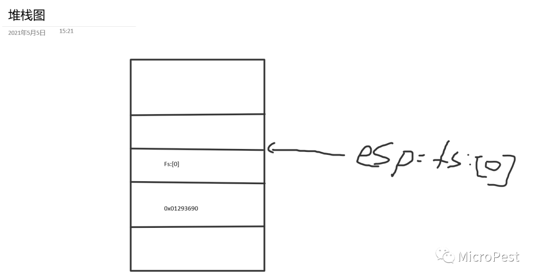 这里取出来fs:[0]给eax后又把eax入栈,然后将fs:[0]赋值为esp