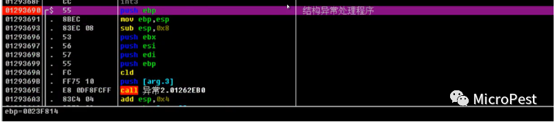 下面进入异常处理函数的地址查看(这里是0x01293690)