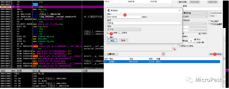 用OD随便打开一个进程,然后随便对一条指令打一个F2断点