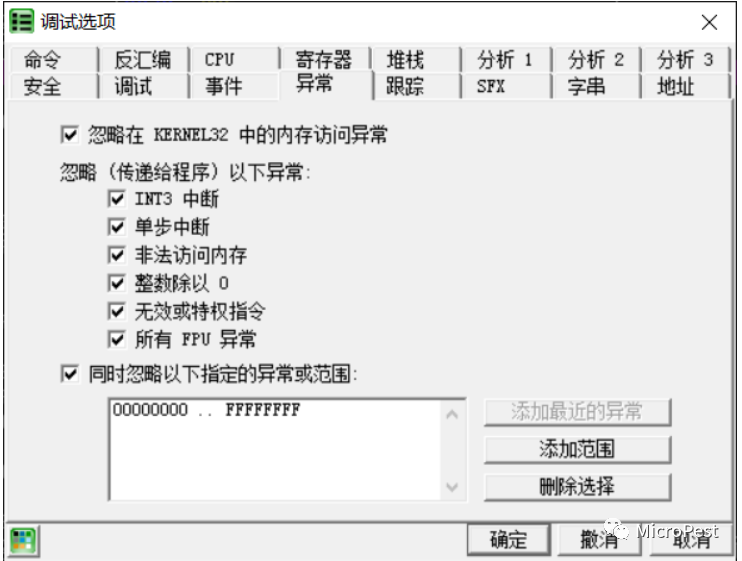 就可以设置要捕获的异常类型了,选择忽略掉一些异常后再遇到就不会中断下来了。