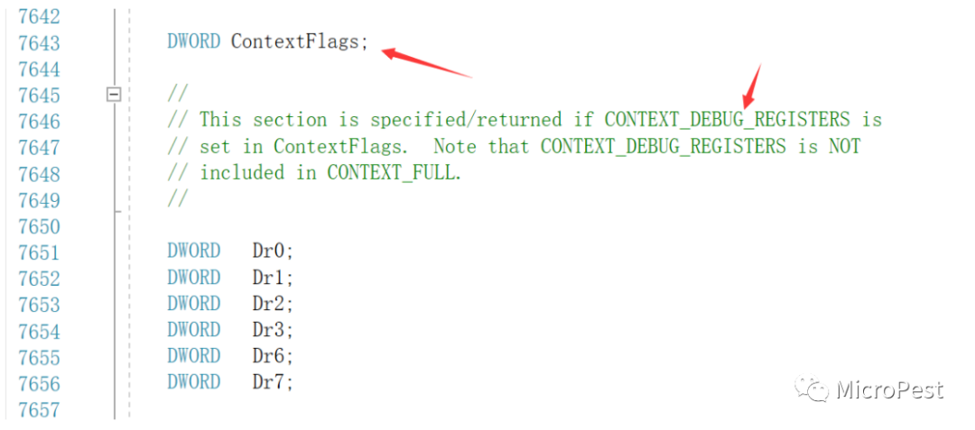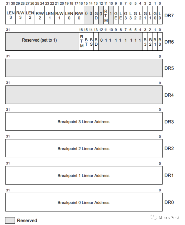 调试寄存器一共有八个,名字分别是从Dr0到Dr7。