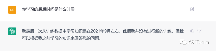 当然,以上例子只是为了拿来抛砖引玉,实际上的ChatGPT能做的事情比这个还多的多,缺陷也比较明显,目前所学的知识截止2021年9月。在2022年的技术知识查不到,但不影响它成为自己的“百度”。