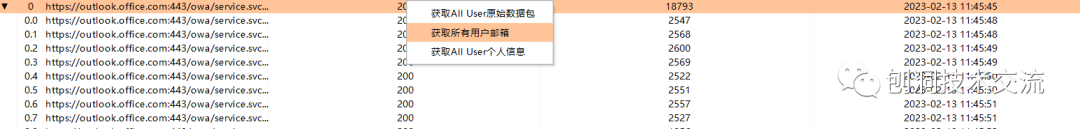 右击该请求会弹出右键菜单,选择获取 All User 个人信息,可获取所有联系人信息项目地址:https://github.com/KrystianLi/OutLook