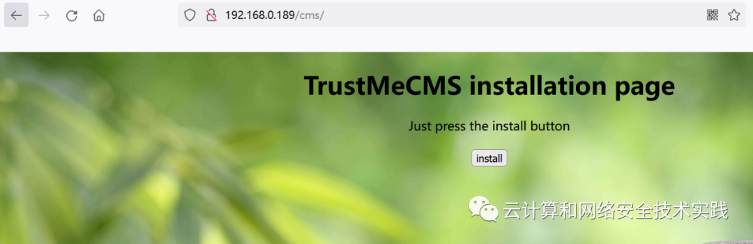 浏览器访问http://192.168.0.189/cms,顺手点击了install,