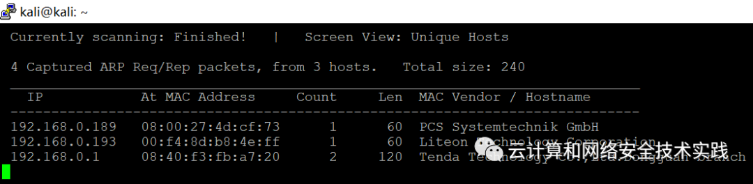 sudo netdiscover -r 192.168.0.0/24,这回有地址了,189就是,