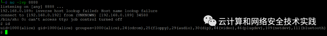 kali攻击机这边再开个新的反弹shell监听,nc -lvp 8888,