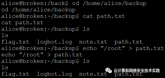 发现有脚本能够把path.txt里目录的访问权限搞到alice用户下,