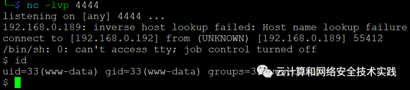 那就造一个,里面放上反弹shell命令,同时再开个监听,nc -lvp 4444,