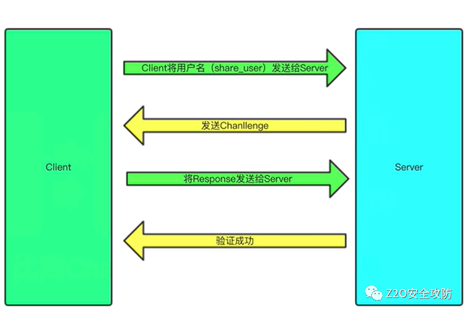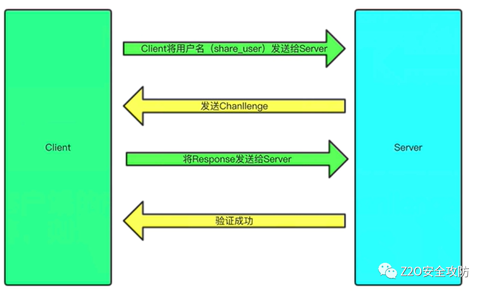 • 服务器端收到客户端的Response后,比对Chanllenge1与Response是否相等,若相等,则认证通过。