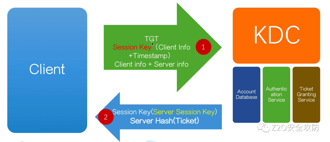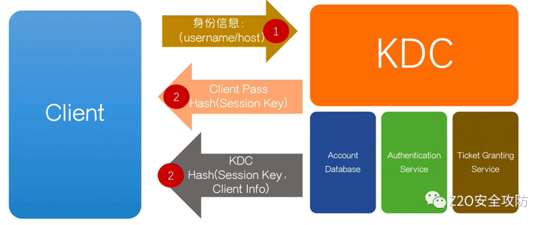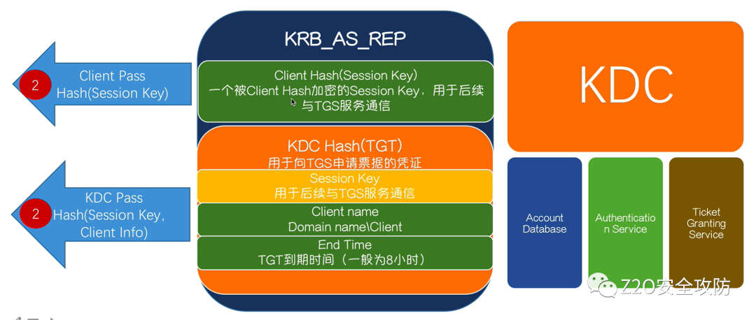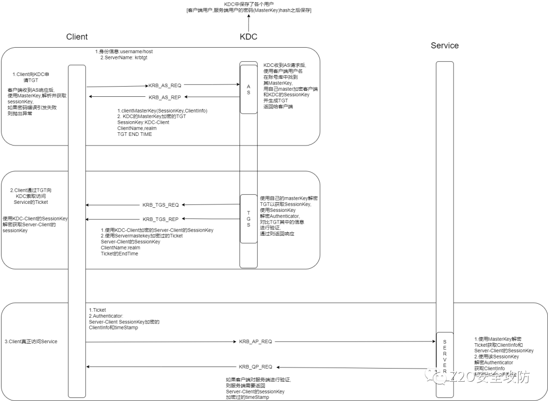• AD (account database):存储所有client的白名单,只有存在于白名单的client才能顺利申请到TGT