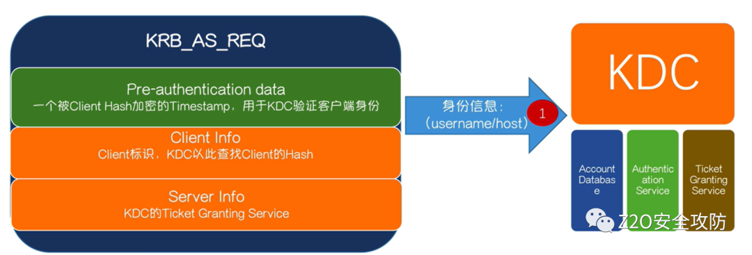 KDC(Key Distribution Center):密钥分发中心,里面包含两个服务:AS和TGS