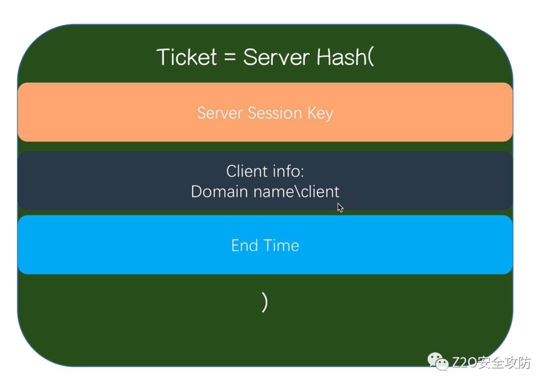 SS(Service Server) | 特定服务提供端的票据(服务票据) |