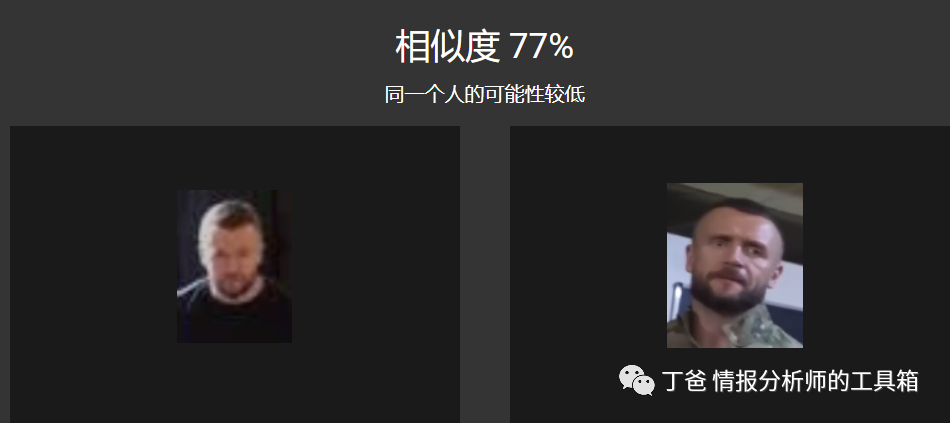 但用腾讯优图的人脸比对工具比对的结果是两张都显示是同一人的可能性较低。