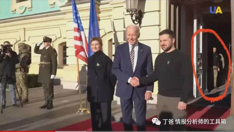 这两天国内社交媒体上有自媒体转发境外自媒体消息,说在美国总统拜登突击访问基辅会见乌克兰总统泽连斯基期间,在视频和图像画面中出现了相貌和泽连斯基非常相似的人员,疑是泽连斯基有替身。有媒体调侃说是“满江红”剧情再现。