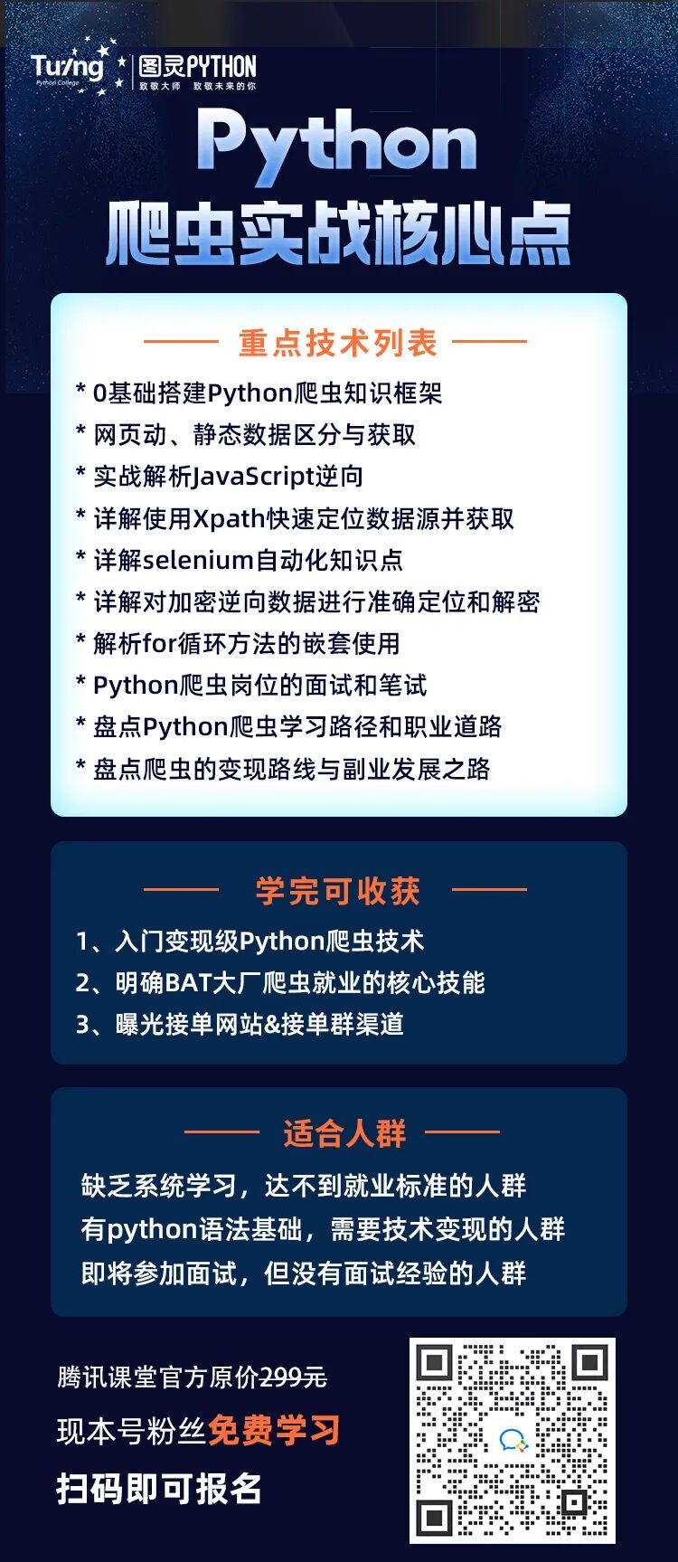 这是一套专讲Python爬虫与爬虫兼职的实战课程。迄今为止已经帮助了超1W学员快速进阶!