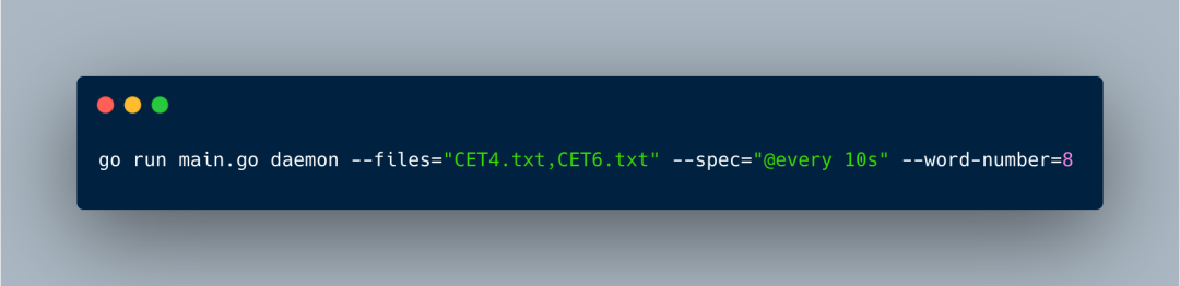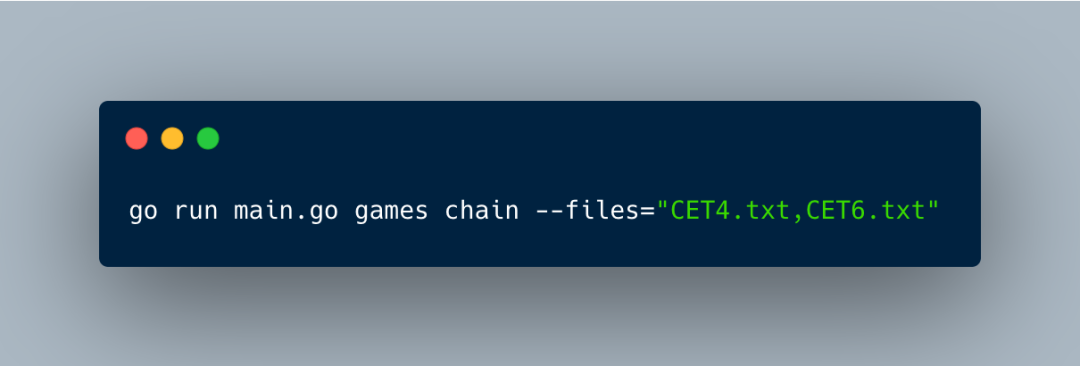 files:默认导入 CET4.txt 单词文件,你可以通过逗号同时导入多个单词文件,它们都存储在 library 文件夹下。