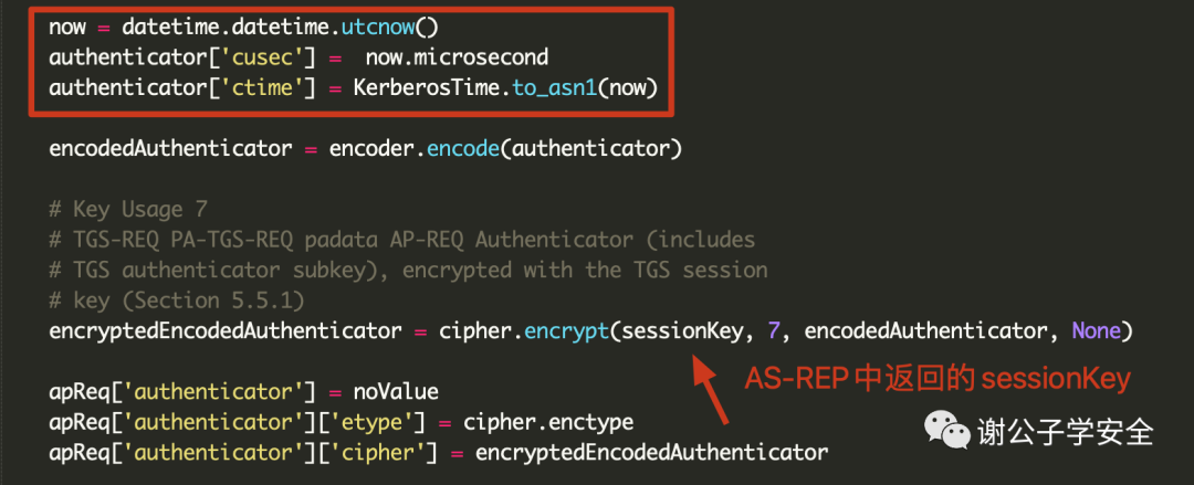 如图所示,在impacket/krb5/kerberosv5.py可以看到使用如下加密方式使用Logon Session Key加密的时间戳。