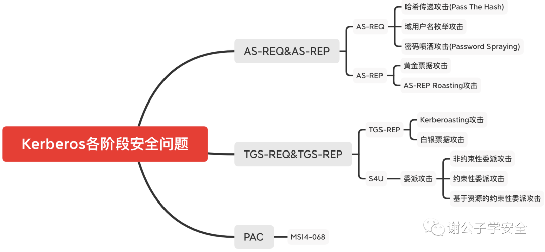 如图所示,是Kerberos协议各阶段容易产生的安全问题: