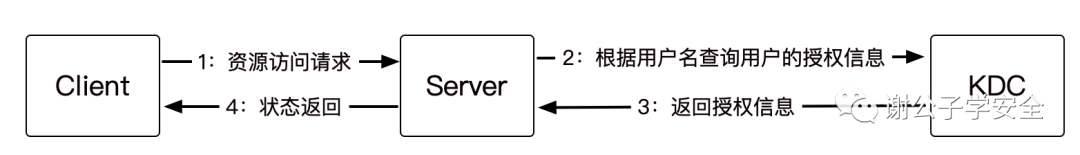 如图所示, 在没有PAC的情况下,Server与KDC之间必须进行用户授权信息的查询与返回 :