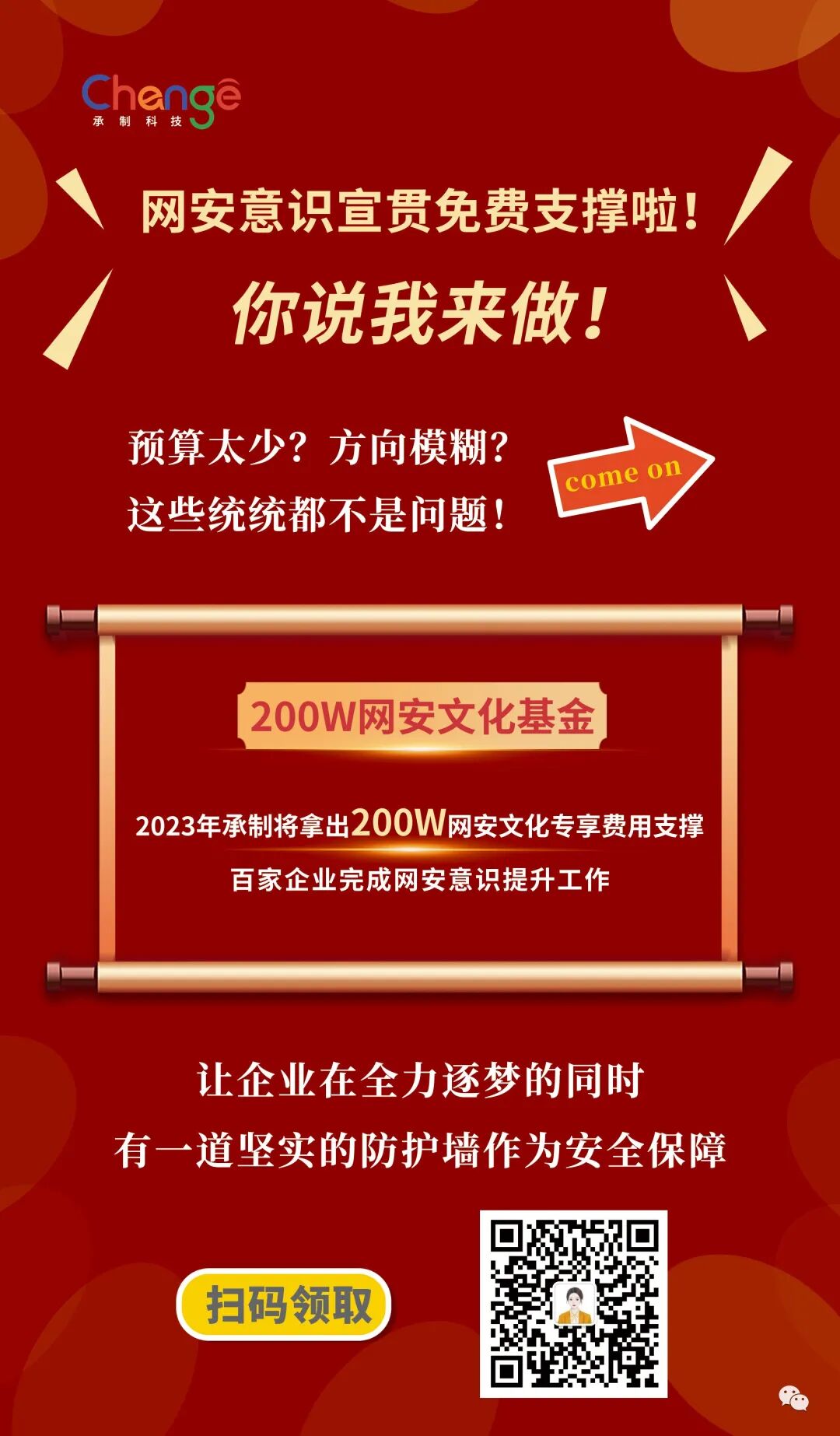 若您单位有宣贯采购计划或因经费太少无法正常实施,可以参与领取网安文化专项基金。