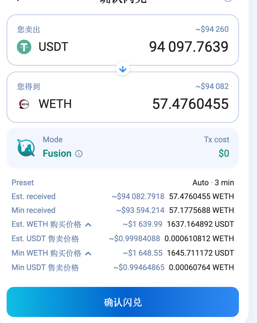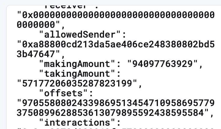 明白了这些信息后,结合实际体验过程中的所调用的函数和 resolver 的作用,不难推断出其实 Fusion Swap 功能就是利用限价订单的模式,把兑换率设置为用户可以获得的最低数量的代币反向计算出来的兑换率,然后剩余的浮动部分,也就是用户额外能得到的交给 resolver 来决定。随着时间的推移,用户能得到的部分会越来越少,但是这个“少”仅仅是 resolver 决定的少,而并不体现在链上,毕竟用户签名的订单信息,已经设置了最低的兑换率。