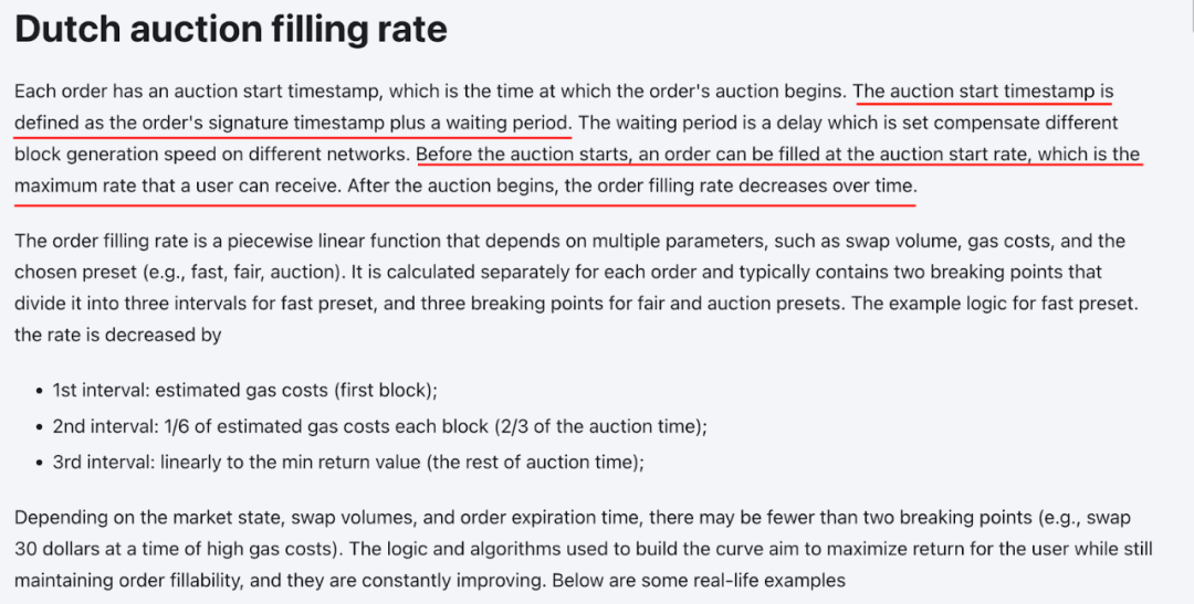 除了 resolver 之外,描述中同时也提到了另外一个名词—— Dutch Auction,从描述上来看,就是一个兑换率会随着时间不断减少的限价订单。这里似乎有点矛盾。为什么已经是限价订单了,还可以兑换率不断变化?为了弄清楚这个问题,Cobo 安全团队专门去体验了一下。找到了一些关键的信息: